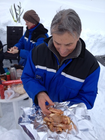 Flott påskeaften med fem timer utafor. Vi hadde sol, snøbyger og opphold. Oppdaget at mannen er hekta på skuter. Kom jammen godt med å få det tråkka med skuter, så masse løs snø! Moens, Jarnes og familien i Cuba 2 kom ned i gropa, kjempekoselig.